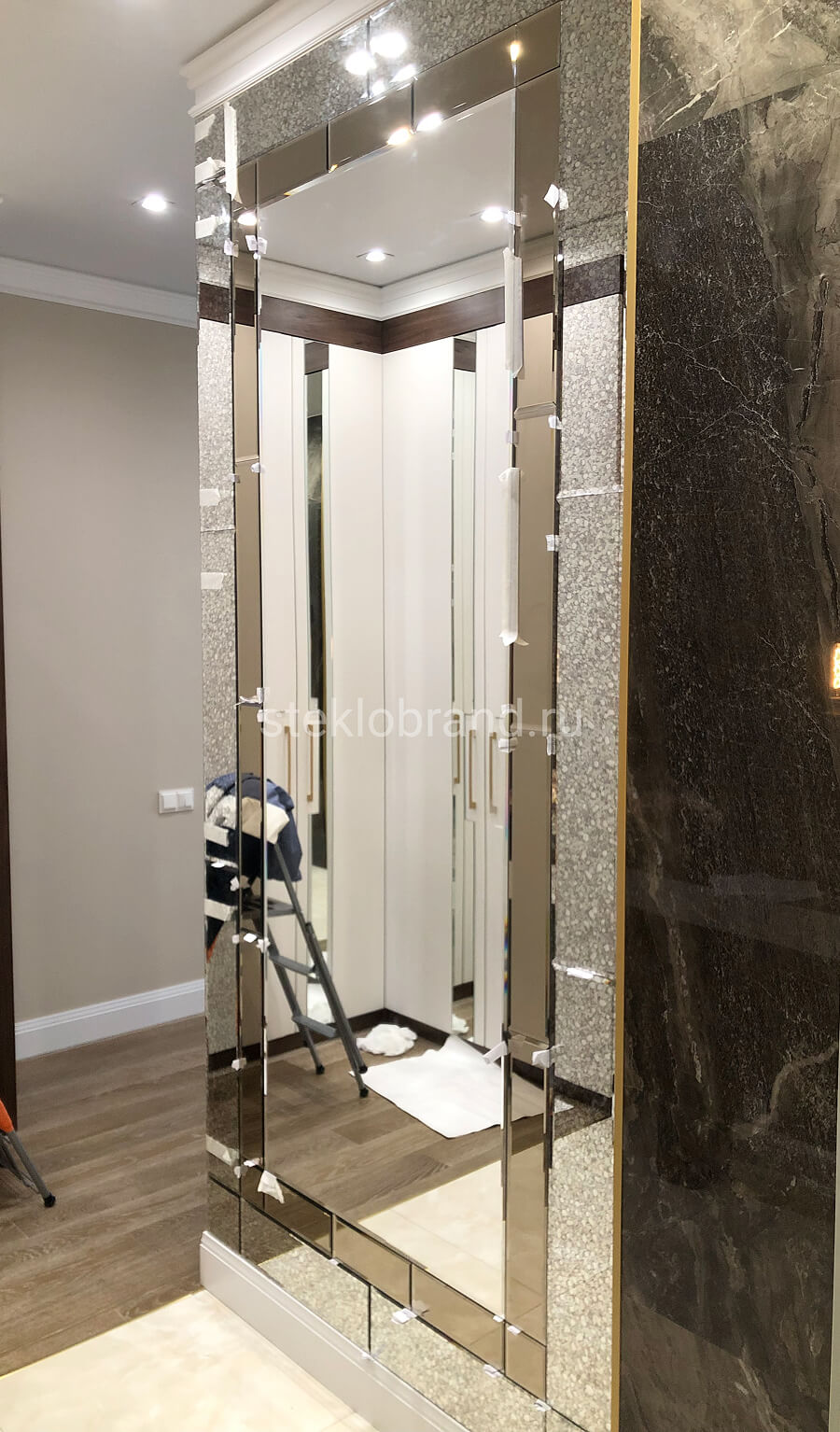 Да, мы предоставляем гарантию на все изделия и работы по монтажу. Это включает надежность креплений, целостность стекла и зеркал, а также корректное выполнение всех технологических требований.