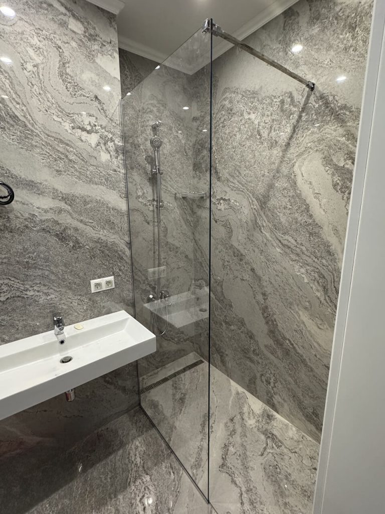 Стеклянная душевая перегородка в ванной может устанавливаться как в нишах, так и вдоль стен или в угловых зонах. Она гармонично сочетается с плиткой, камнем, керамогранитом и другими отделочными материалами. Возможность изготовления перегородки по индивидуальным размерам позволяет добиться точной подгонки и аккуратного внешнего вида.