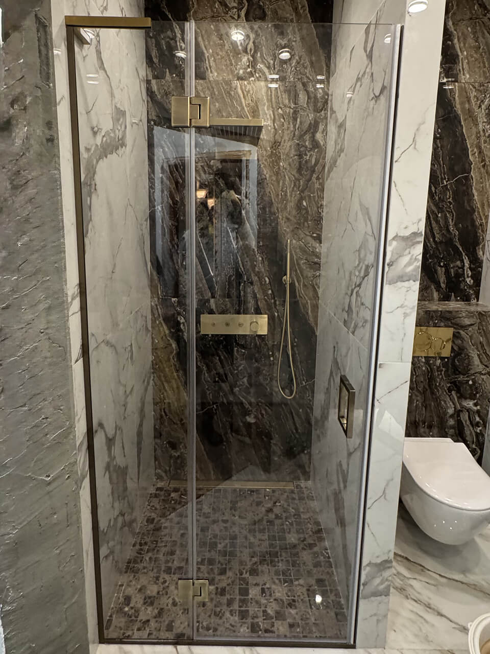 Отдельной категорией являются душевые перегородки из стекла в нишу. Такие конструкции изготавливаются строго по размерам проёма и обеспечивают максимально аккуратный и завершённый внешний вид. Перегородка, установленная в нишу, может включать одну или несколько стеклянных панелей, а также дверь выбранного типа. Индивидуальное изготовление позволяет учитывать отклонения стен и особенности геометрии помещения.