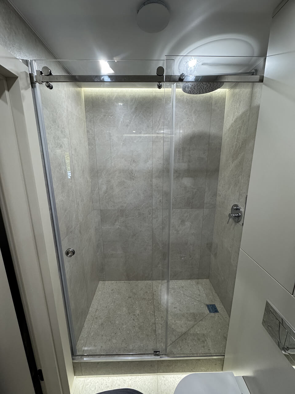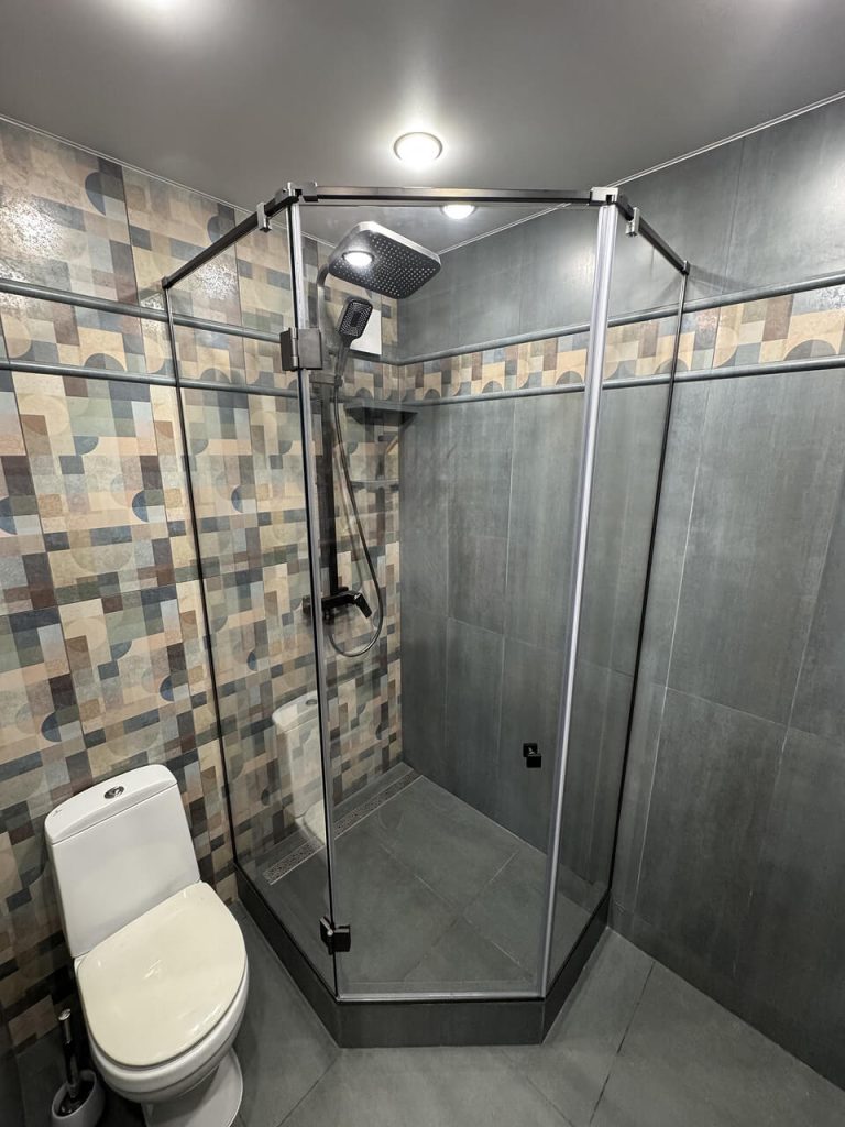 Стеклянная душевая перегородка на заказ позволяет учитывать все нюансы помещения, включая ниши, выступы и нестандартные углы. Точная резка и обработка стекла обеспечивают аккуратный внешний вид и долговечность конструкции.